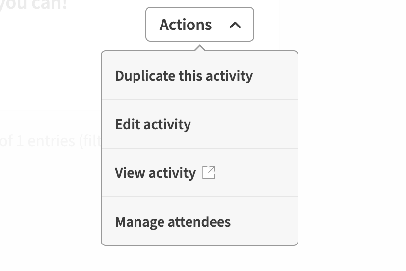 • Open the 'actions' drop-down to the right hand side of your event.