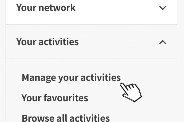 • Select ‘manage your activity’ (or similar) from the dashboard menu.